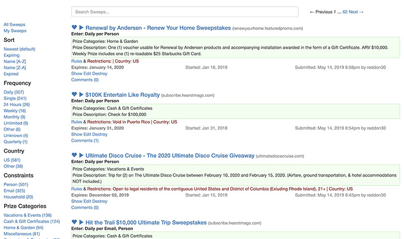 Our filters allow you to find the sweepstakes you love the most. Whether it is Daily entries or